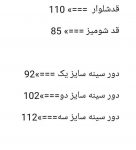 | اندازه | 38, 40, 42, 44, 46, 48 |