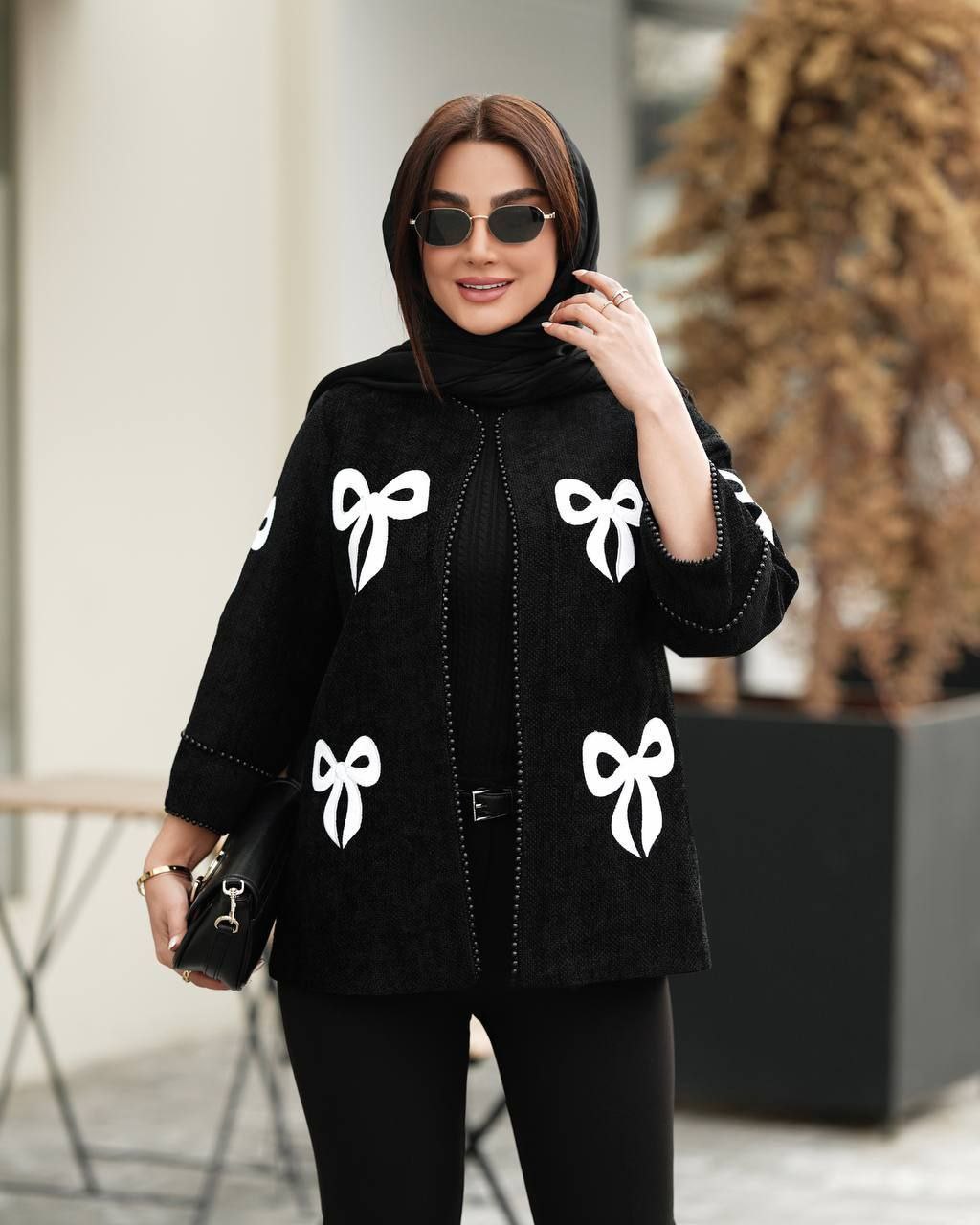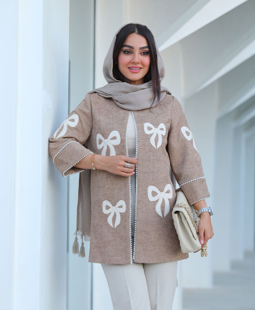 🧥مدل :کت یقه گرد مروارید دوزی با گلدوزی پاپیون