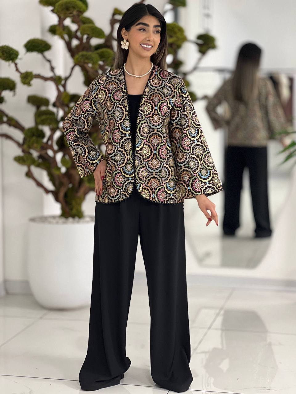 🧿 جنس : پارچه هندی سوزن دوزی و پولک دوز