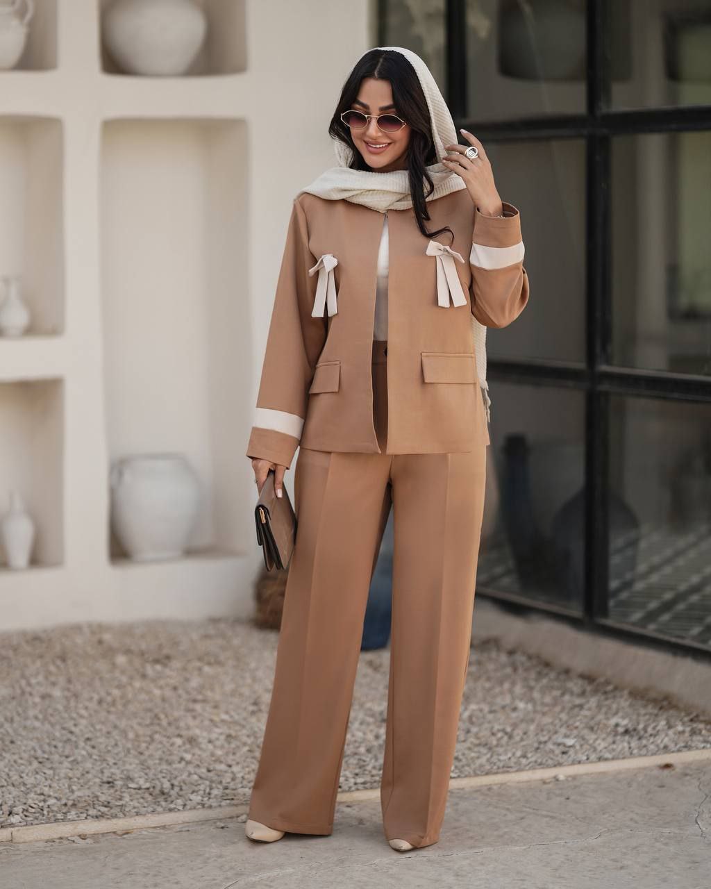 🧥 ست کت شلوار زنانه ، پاپیونی، با شلوار بگ ، استایل روزمره و شیک